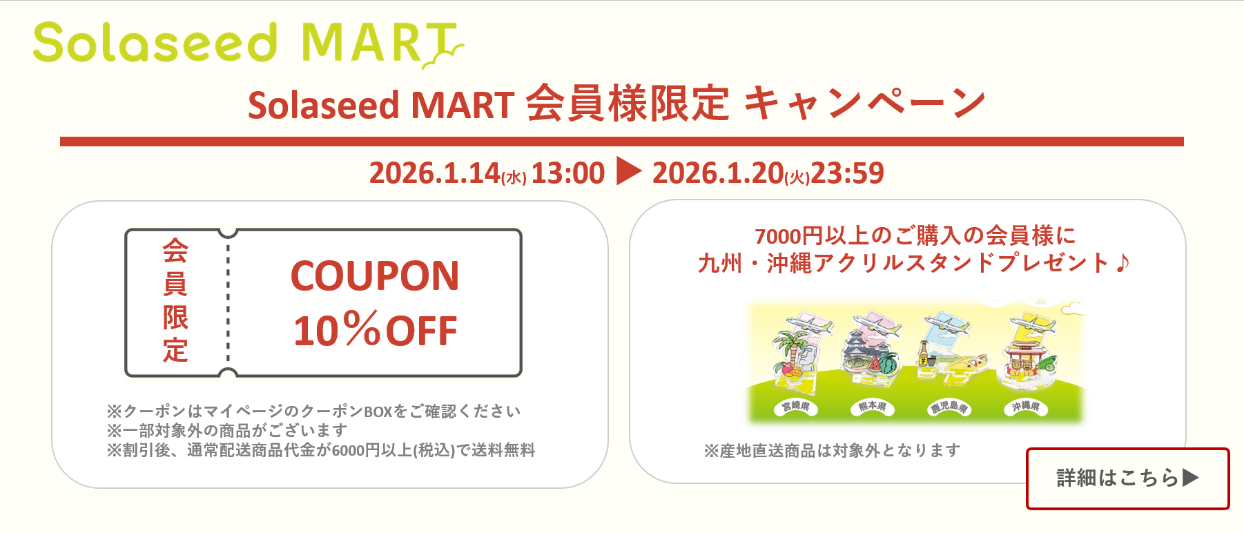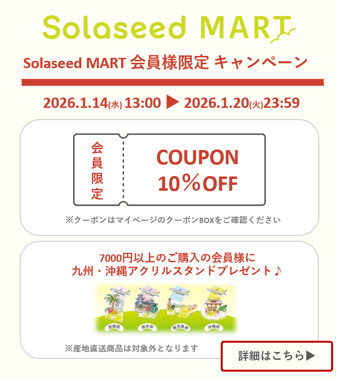 「Solaseed MART(ソラシドマート)」では今後も九州・沖縄の選りすぐった商品をお届けいたします。